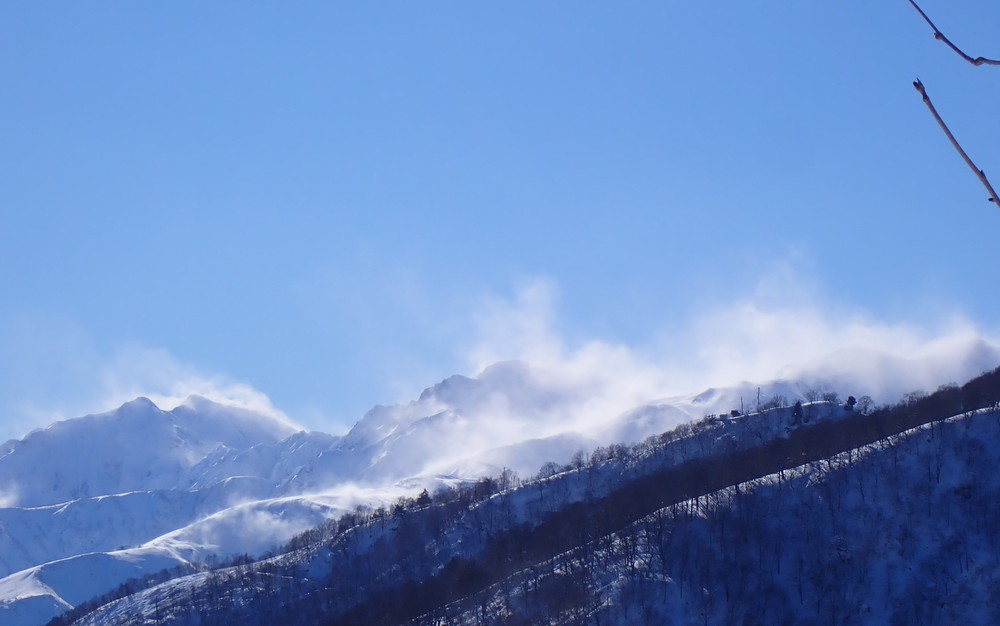 天気は良いが、すでに稜線には雪煙が立ち強風の様子