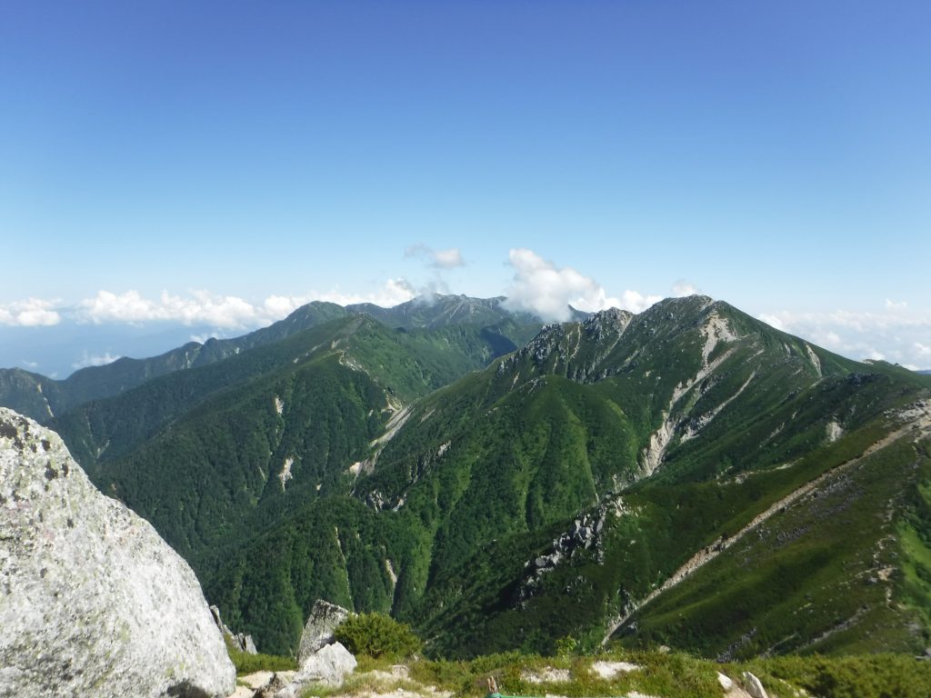 空木岳から駒ヶ岳まで中央アルプスの主稜線を見渡します。