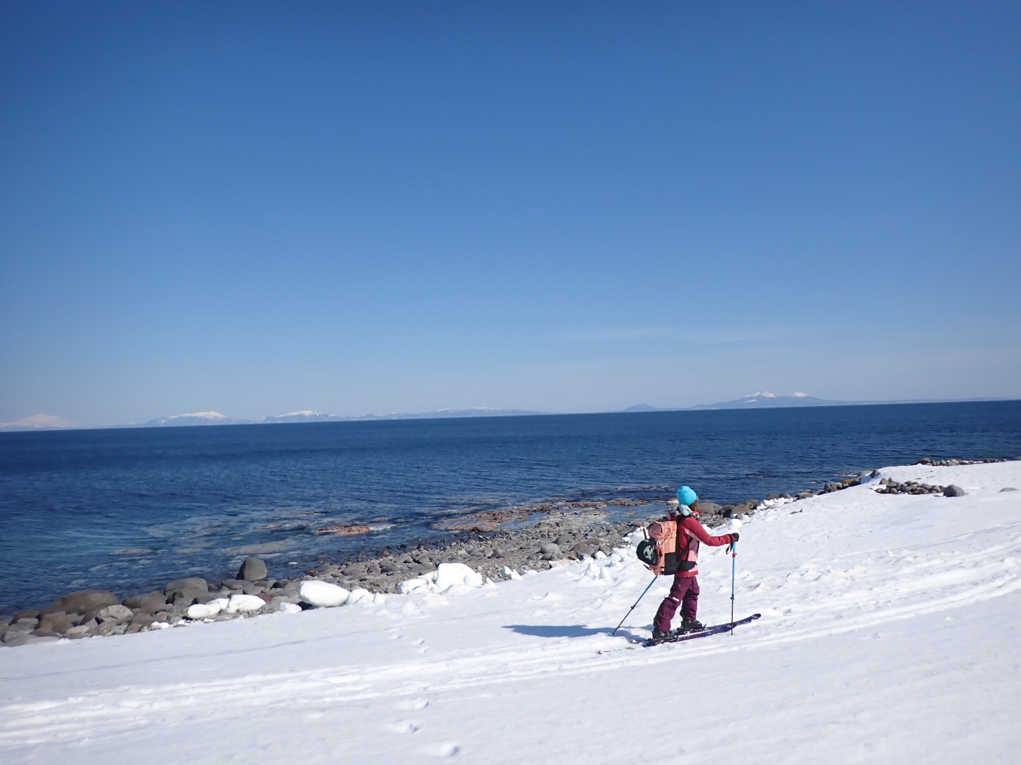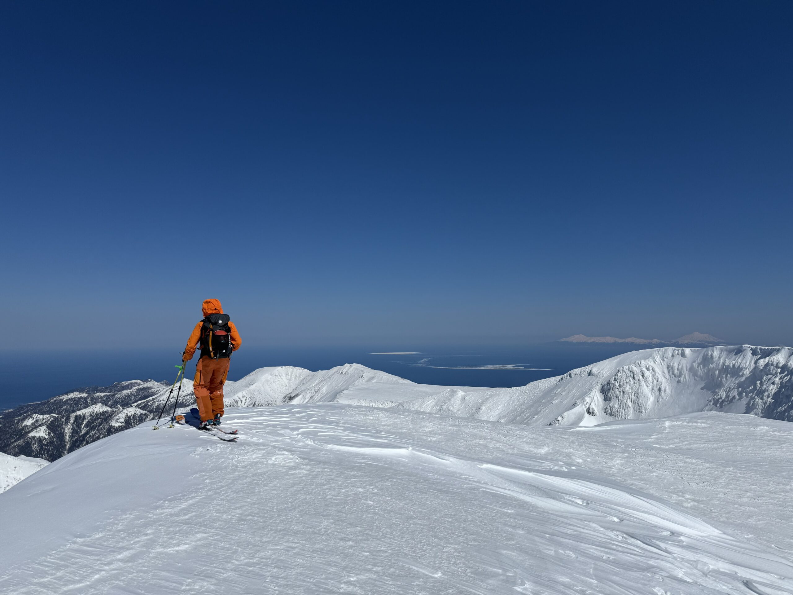 海岸から雪を繋いで登り、両側に海が見える知床岳を滑りましょう!