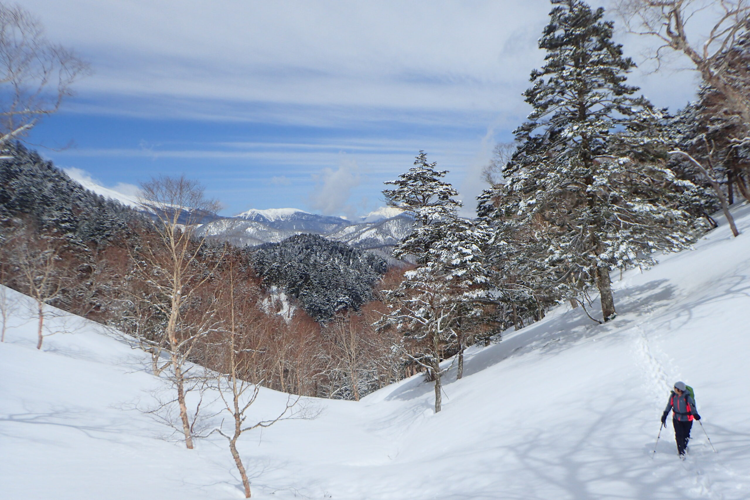 年々の積雪状況によりスタート地点、登下降ルートを選択して山頂を目指します。